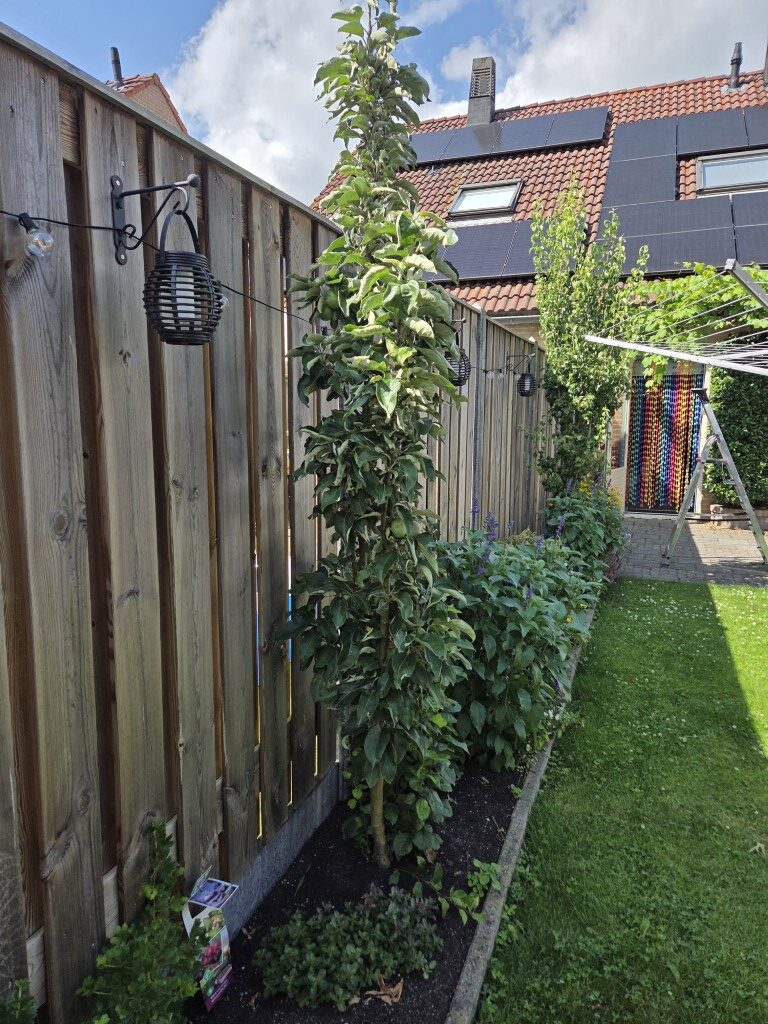 In totaal 9 appels groeien er aan onze boom dit jaar. Mooi rond en de kleur komt ook al aardig op. Als dat geen lekkere appels worden.